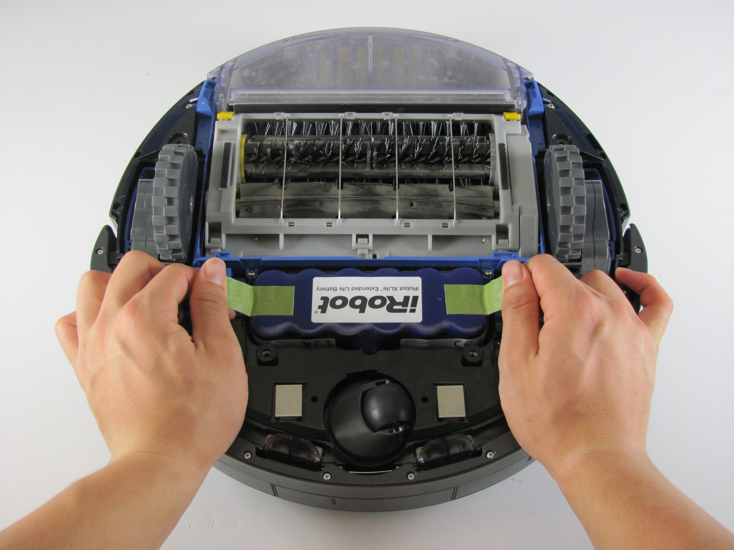 How to repair roomba battery. Step 1 spinning brush place the roomba upside down so that the wheels and brushes are facing upward. Place the robot vacuum upside down on a flat surface. Follow these simple steps to learn how to remove and replace the battery for your roomba® 600 series.